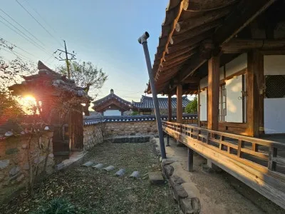 사랑채 앞에서 노을과 함께 찍어봤습니다. 큰 규모의 만취당고택을 둘러보면서 살기 좋은 지역임을 알 수 있었습니다.
