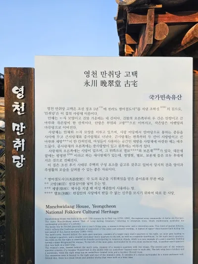 "영천 만취당 고택은 조선 정조 5년 1781년에 전라도 병마절도사*를 지낸 조학신의 집으로 '만취당'은 이 집의 사랑채 이름이다.