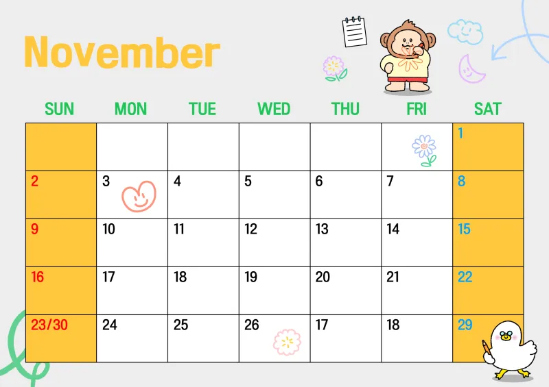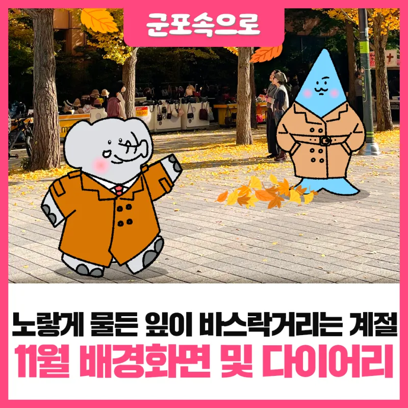 [11월의 군포] "군포의 거리가 황금빛으로 물드는 11월" 캘린더 배경화면 및 다이어리 다운로드(PC/모바일)