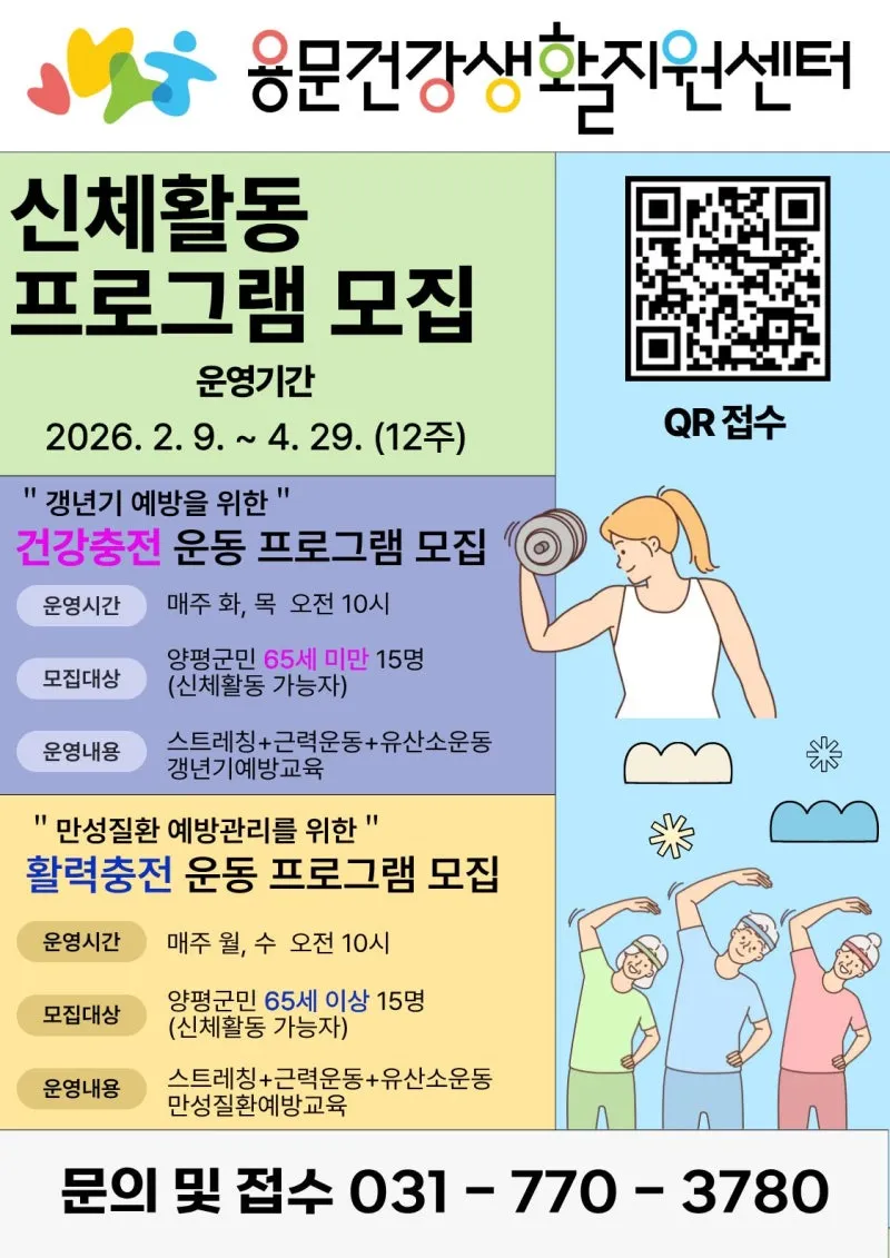 [용문건강생활지원센터] 신체활동 프로그램 「건강충전·활력충전」 대상자 모집
