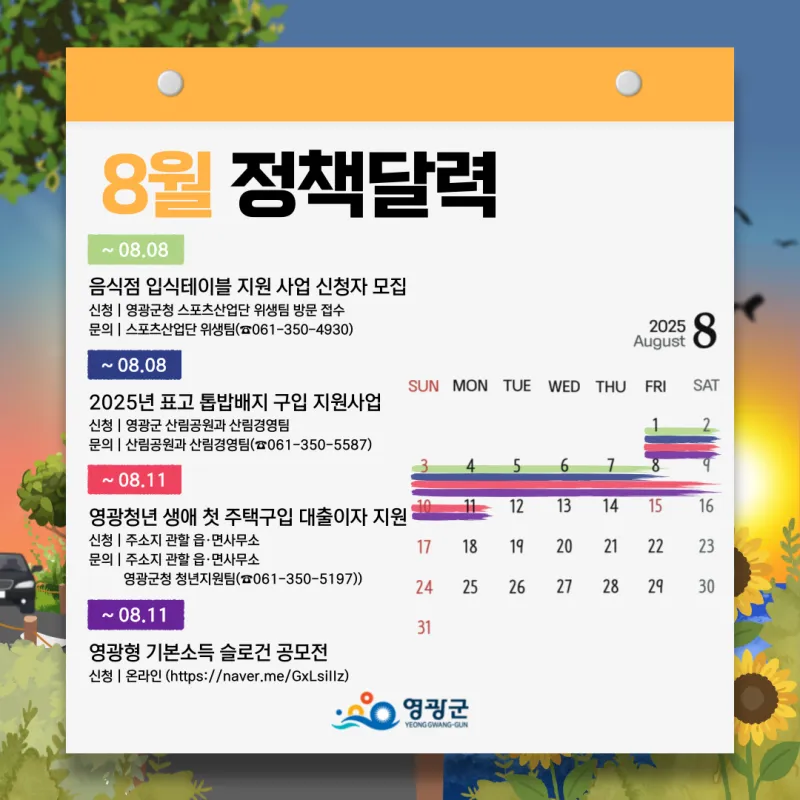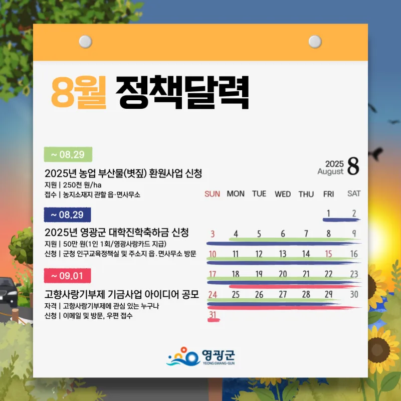 🌻 2025년 8월, 영광군 정책달력 정리!