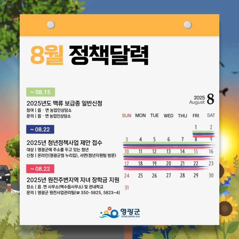 #영광군정책 #8월정책달력 #영광청년정책