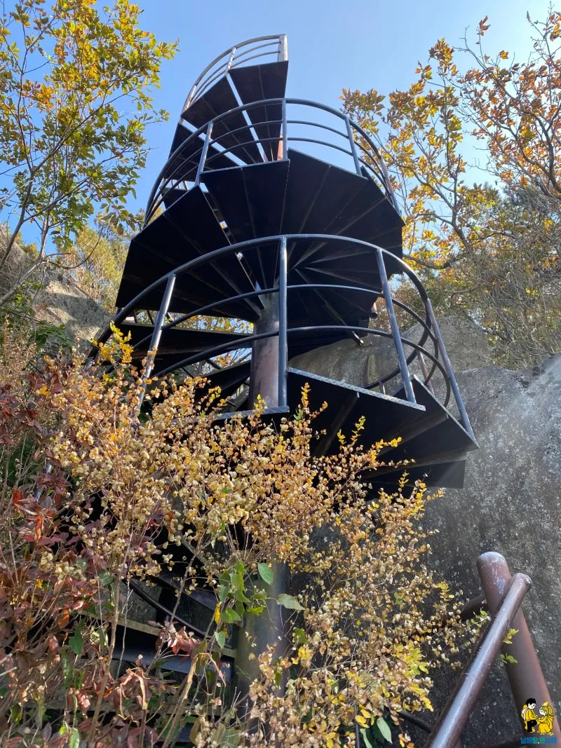 한참 올라가다보니 이런 회전계단이 있어요. 바위 틈으로 줄이 매달려 있는 거 보니 계단이 생기기 전에는 줄을 잡고 올라가야 했던 거 같아요. 지금은 튼튼하게 계단을 만들어 두어서 올라가는데 무섭지 않더라구요.