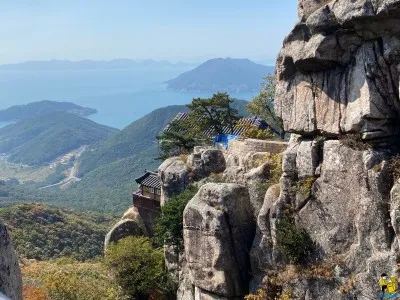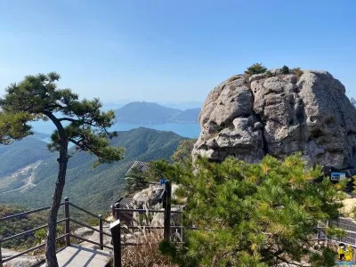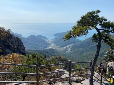 계단 끝에 올라서 본 남해 풍경은 반하지 않을 수 없습니다. 산의 기암괴석들과 바다와 바다위의 섬들이 그림같아서 연신 감탄사를 내뱉게 됩니다.