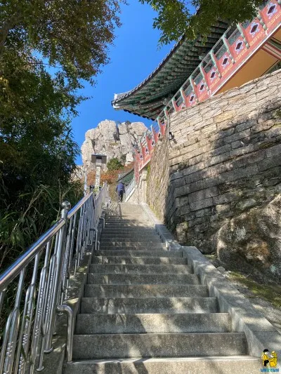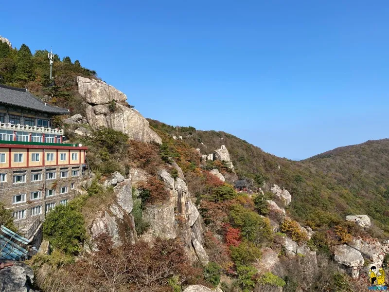 거의 다 올라갔다고 느낄 즈음, 멋진 바위가 하나 서 있습니다. 바로 진시황의 아들 '부소'가 살다가 갔다고 하여 부소암이라는 이름을 갖고 있는 암자인데요, 정말 멋지더라구요. 예전에 봤던 만화 '머털도사'가 살던 우뚝 솟은 집 같았어요. 이런 곳에 암자가 있다니 놀라웠습니다.
