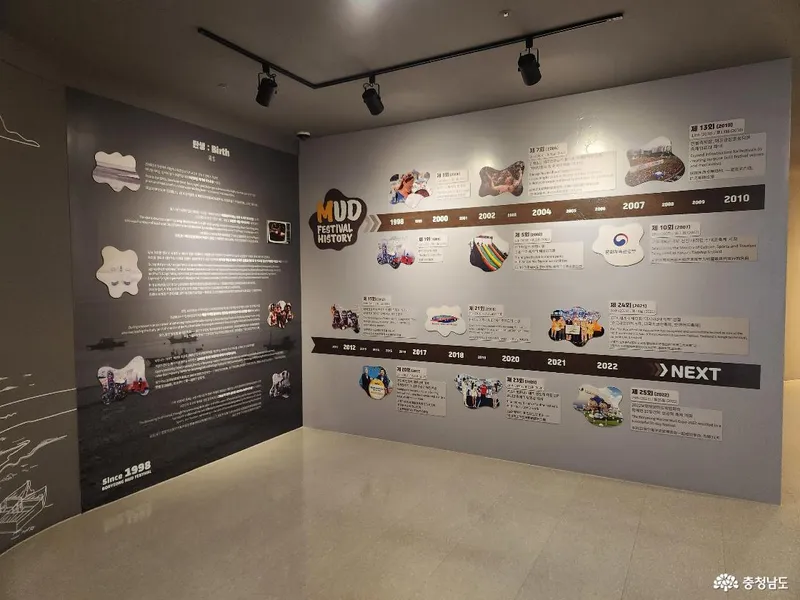 보령머드축제에 대한 소개, 연표같은 것들이 전시되어있고
