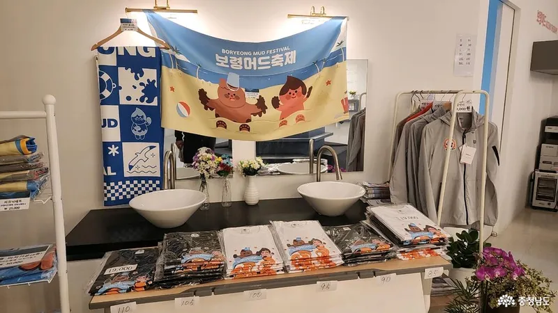 왼쪽으로는 축제홍보관이, 오른쪽으로는 화장품 홍보관이 있어요.