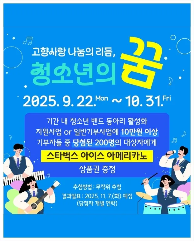 '고향사랑 나눔의 리듬 청소년의 꿈' 이벤트를 진행합니다