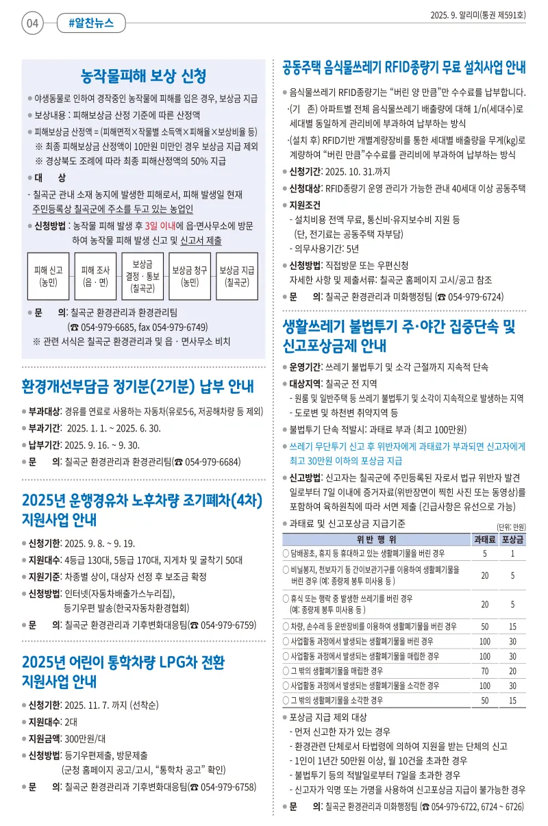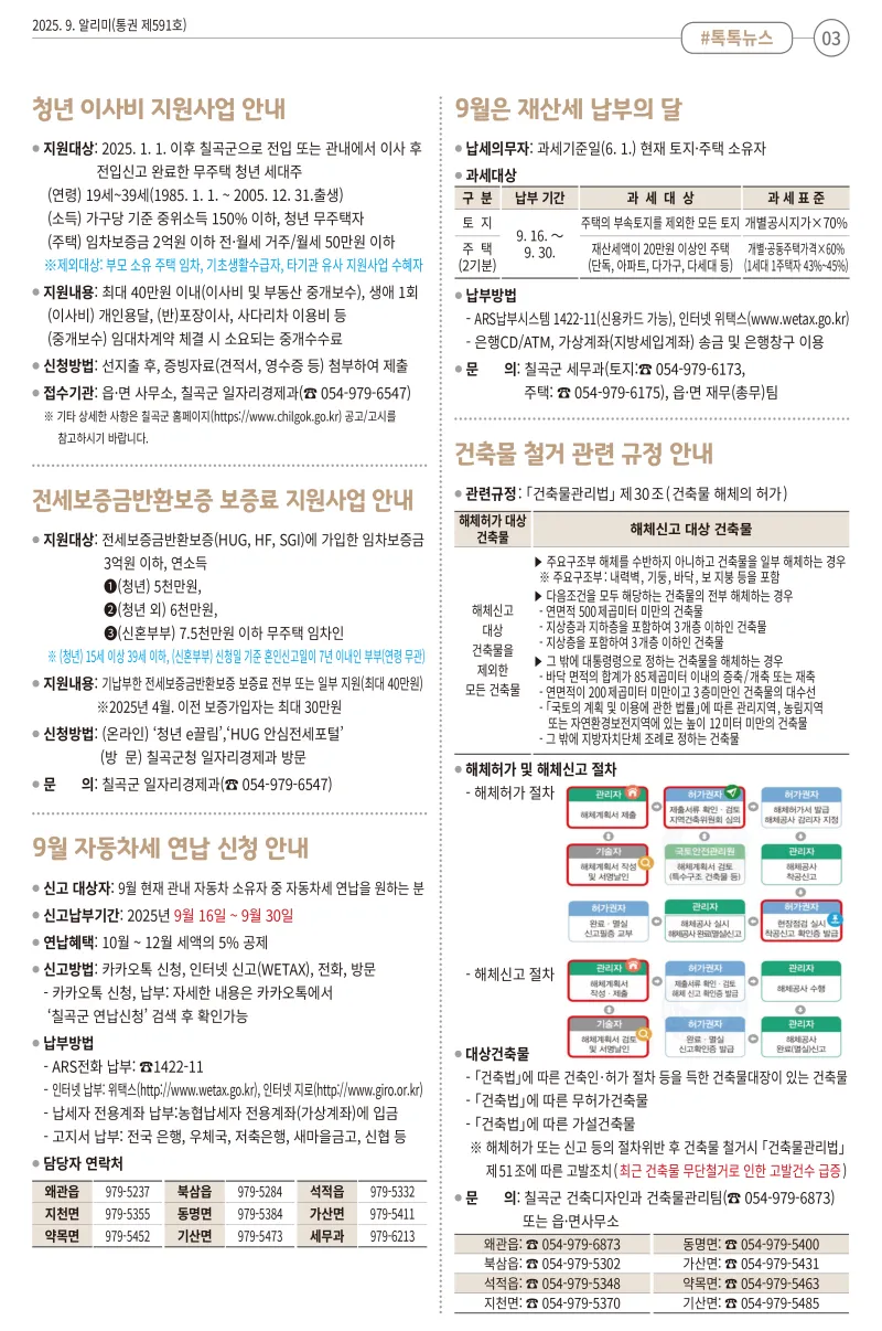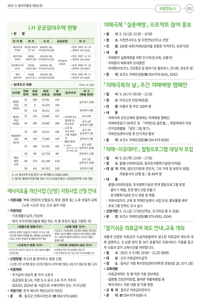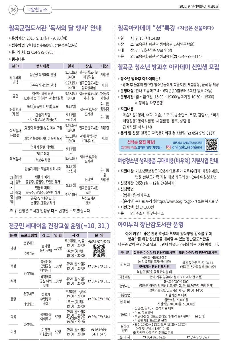 [희망칠곡] 2025년 9월 알리미를 안내해드립니다