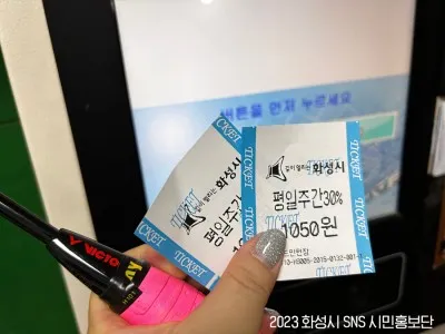 일권 성인(평일) 일반 1매 1,500원으로 다양한 할인이 있네요. 전 다자녀가정 평일 30% 할인으로 티켓을 끊었어요. 화성시 맘애 좋은 화성 다자녀카드 모바일 앱 카드 아시죠? 30%나 할인받아서 1,050원으로 기분 좋게 입장했습니다. 티켓 발권 후 이용 시간은 2시간입니다.