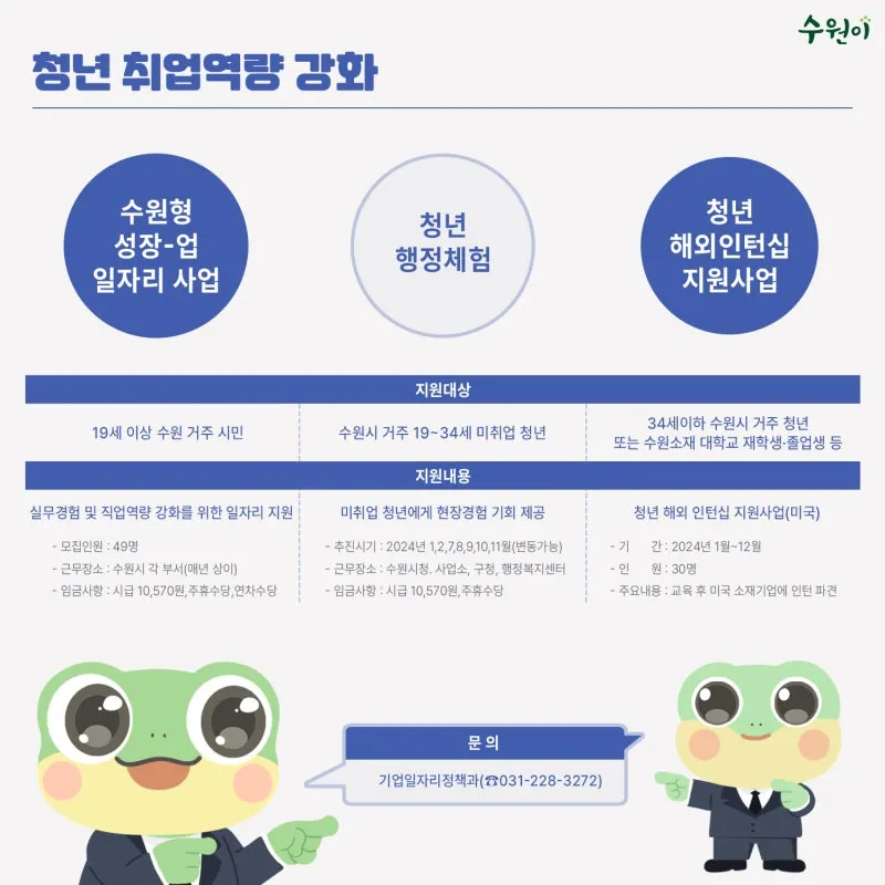 '수원형 성장-업 일자리 사업', '청년 행정체험', '청년해외인턴십 지원사업'