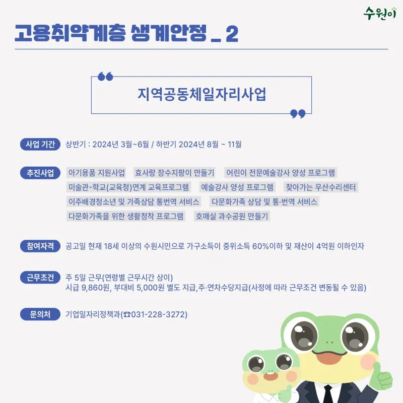 시민맞춤형 일자리 지원 제도에 대해 안내해 드리겠습니다~🐸
