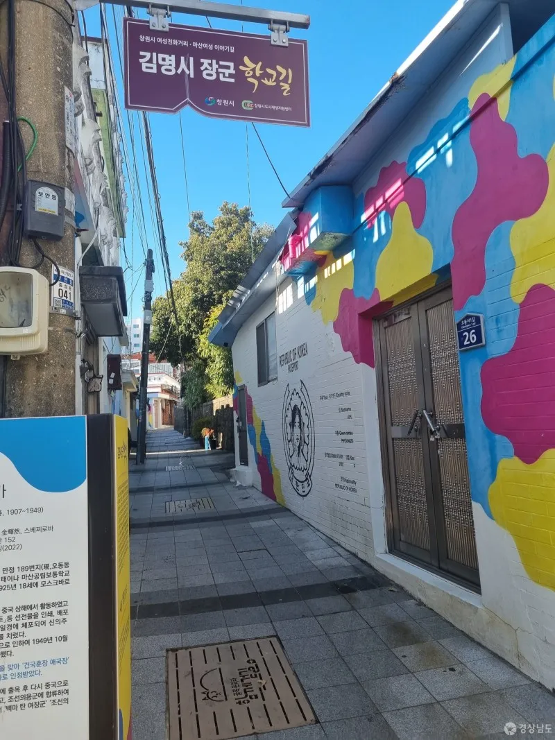 이 오래된 골목은 김명시의 집(현 오동동 문화광장 자리)에서학교(현 성호초)로 향하는 길입니다. 일제강점기 여성이 공부할 기회를 얻기 힘든 시절에 어시장의 가난한 생선 행상의 딸이었던 소녀 김명시는 어떤 꿈과 희망을 안고 학교로 갔을까요?