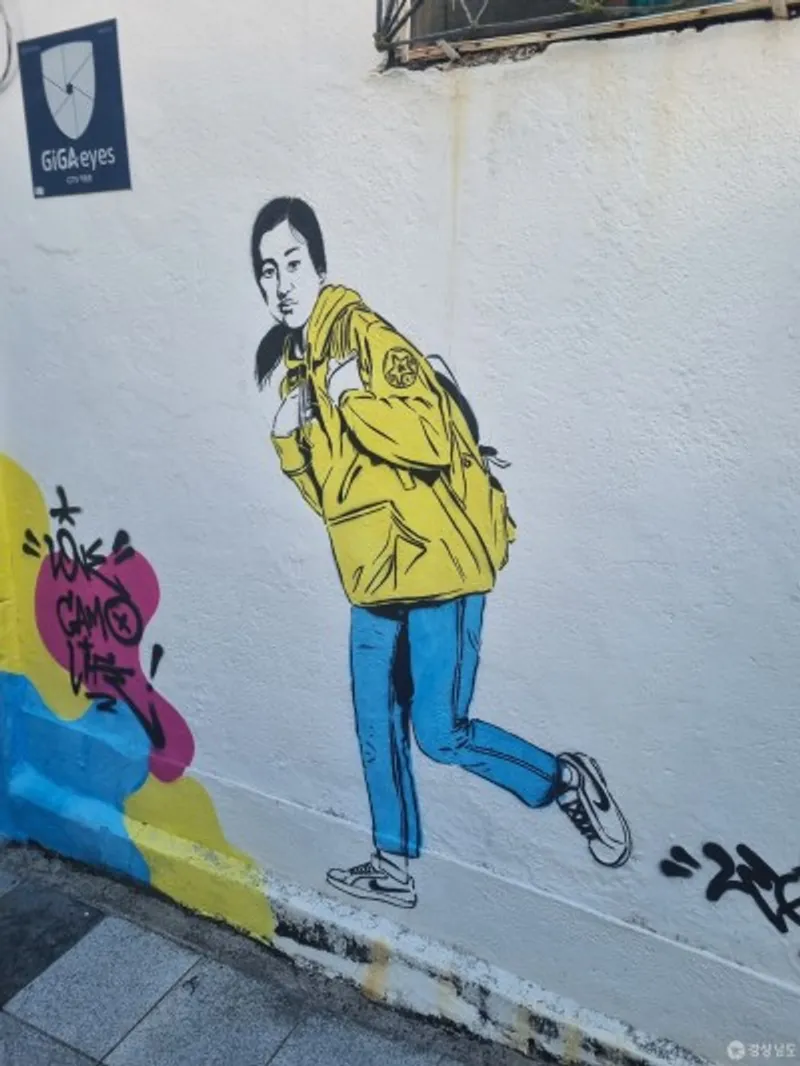 작가 레오다브(Leodav, 최성욱)는 저항문화에서 시작한 거리예술 그래피티로 일제에 항거한 독립운동가 김명시 장군을 현대의 여성상으로 재현했습니다.