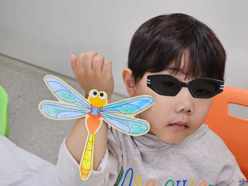 완성된 잠자리를 팔에 끼고 이리저리 다양한 포즈를 취해 주었어요. 멋져요^^