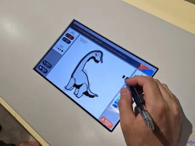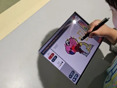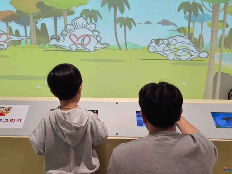 아들은 티라노사우루스, 아빠는 브라키오사우루스를 그리고 있었어요. 사진 촬영에 양해를 구하니 흔쾌히 모델이 되어 주셨어요. 다시 한번 감사드려요^^