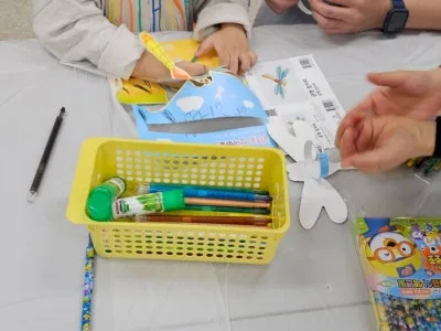 열심히 그리고 색칠하며 진지하게 만들기에 열중하는 어린이의 모습이 너무 귀엽고 예뻤어요.
