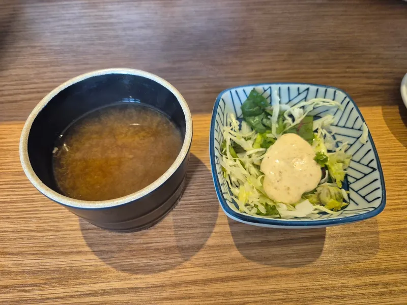 샐러드엔 참깨소스가 뿌려져있답니다.