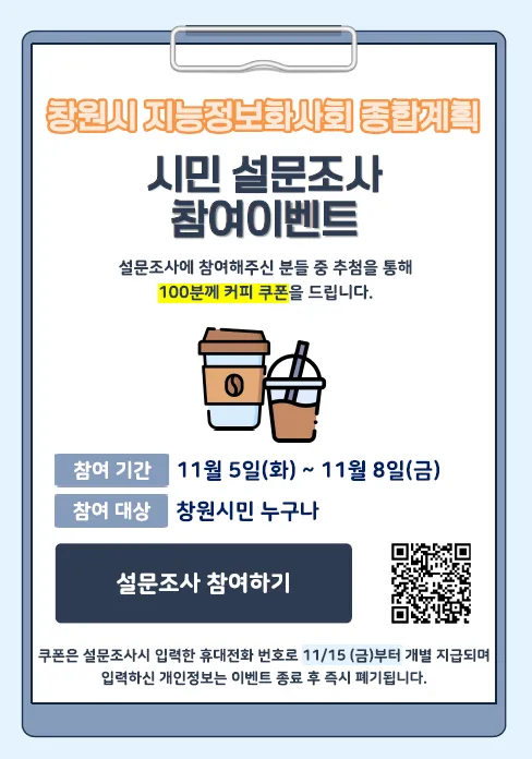 #창원 #창원시 #창원특례시 #창원시이벤트 #창원설문조사 #정보화서비스 #모바일커피쿠폰 #커피쿠폰