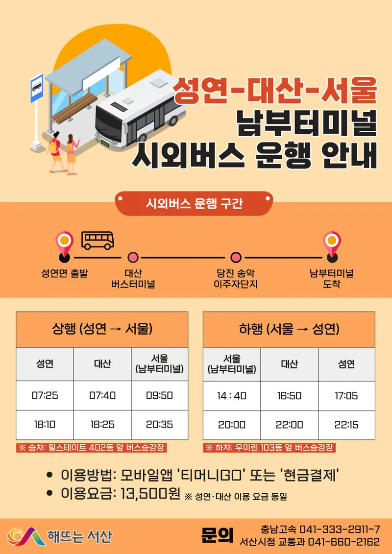 성연-대산-서울 남부터미널... 3월 5일 시외버스 운행개시!!!