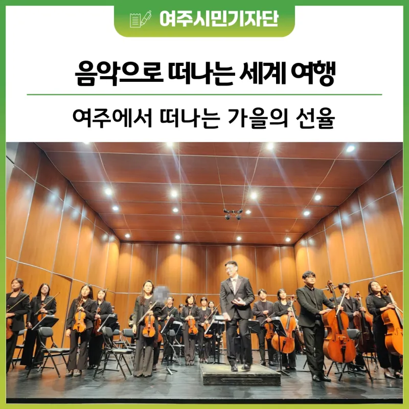 높고 푸른 가을 하늘 아래 선선한 바람이 불던 9월의 마지막 주말, 지난 27일 오후 4시, 여주필하모닉 오케스트라가 마련한 정기연주회 ‘세계 음악 여행’이 열리며 관객들에게 특별한 음악 여행을 선물했다. 이번 공연은 여주필하모닉 오케스트라가 주최·주관하고 여주시가 후원했다.