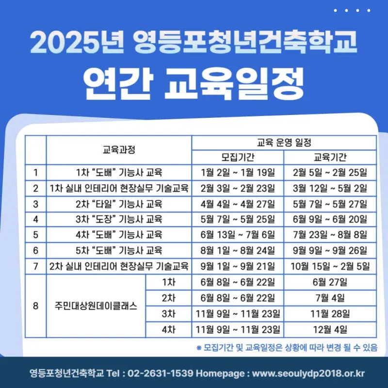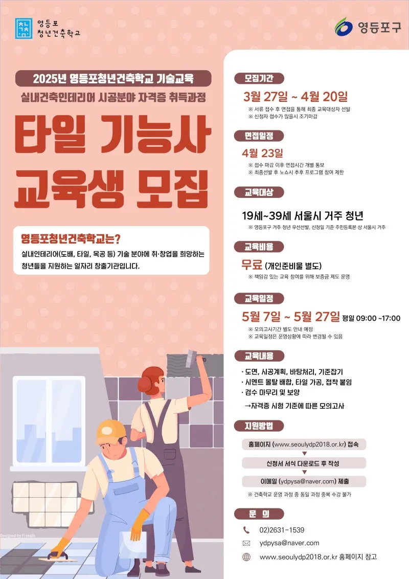 영등포 청년 건축학교 타일기능사 교육생 모집