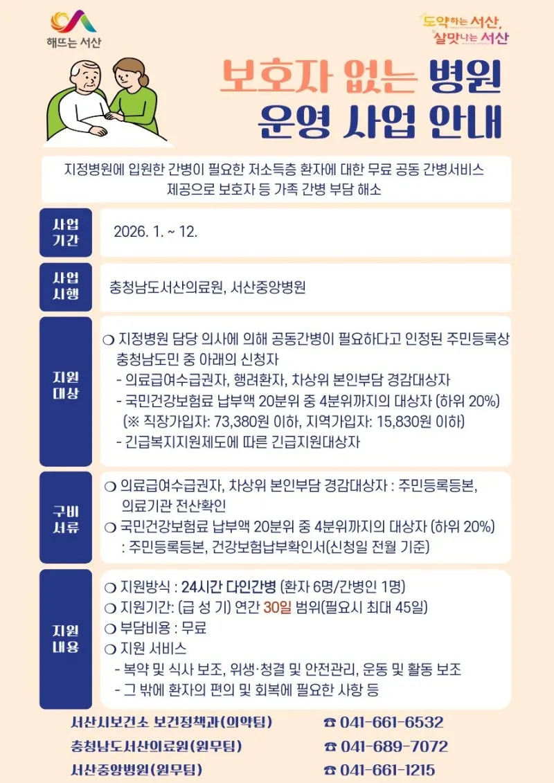 보호자 없는 병원 운영 사업 안내 🏥저소득층 환자를 위한 무료 공동 간병 서비스