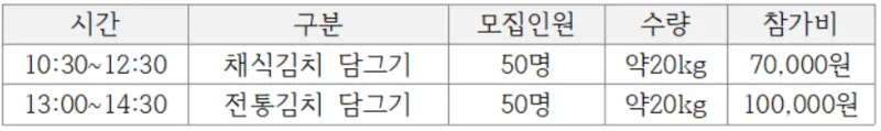 ※ 전통김치 담그기 -> 마감되었습니다.