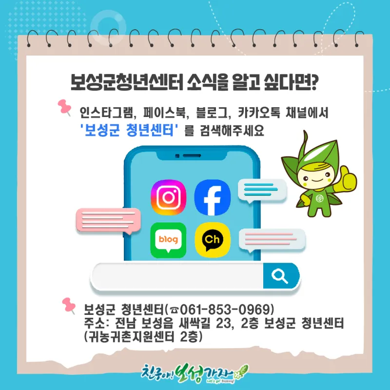 페이스북에서 '보성군 청년센터' 를 검색해주세요~