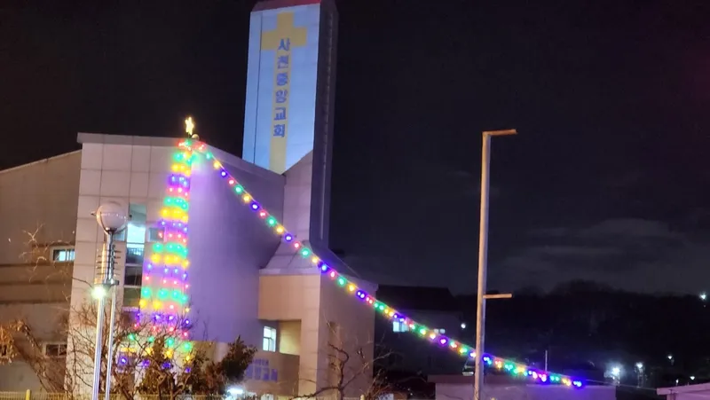 크리스마스 시즌을 맞이하여 옆의 교회는 반짝반짝 예쁘게 꾸며놓았습니다.