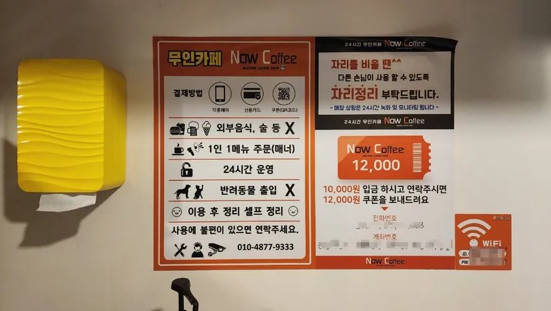 무인카페인 만큼 지켜야 할 사항들이 있으니 참고하도록 합시다.