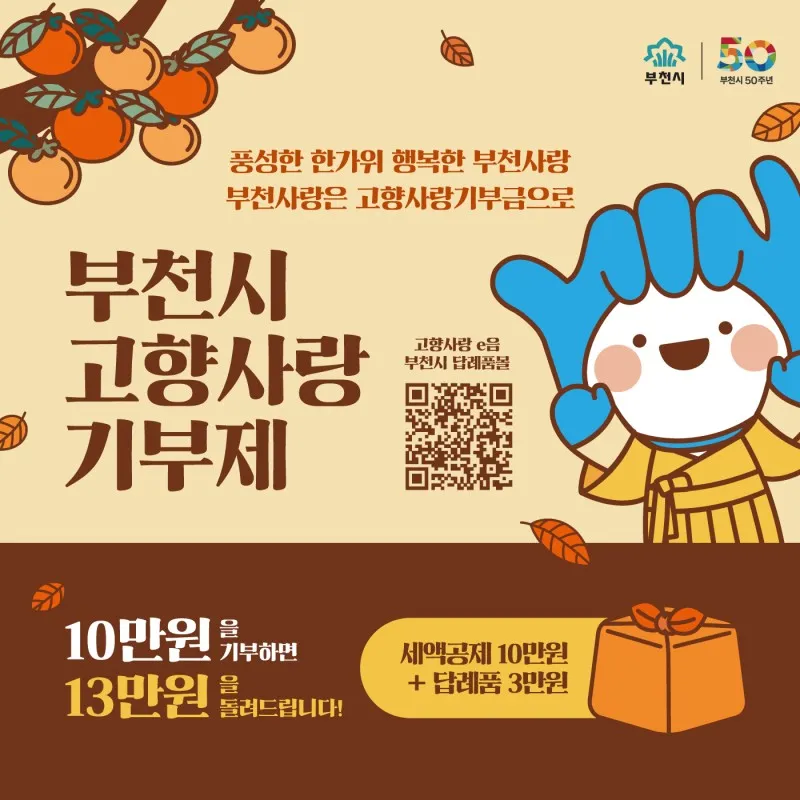 "10만 원 기부하면 13만 원 돌려드려요!" 부천시 고향사랑 기부제!