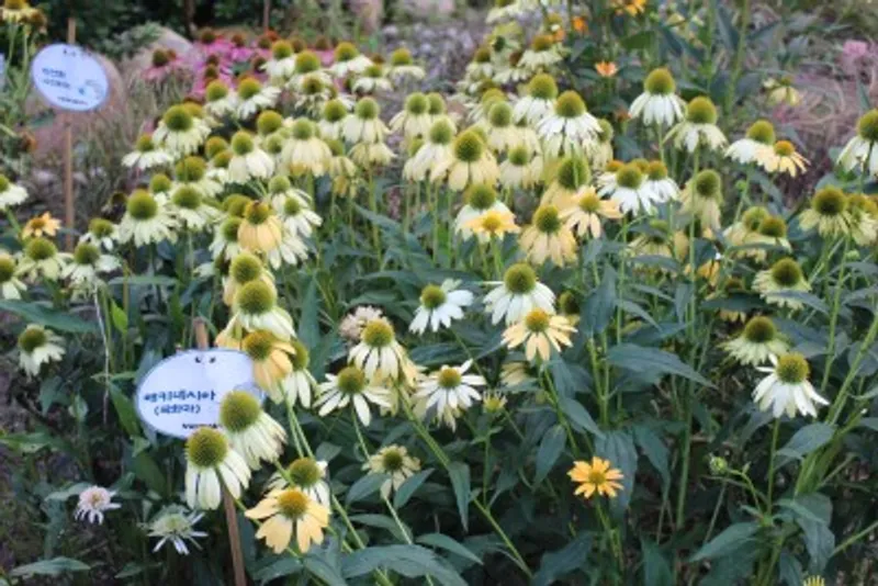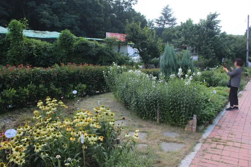 황금 무지개정원에서 꽃들과 식물들 보면서