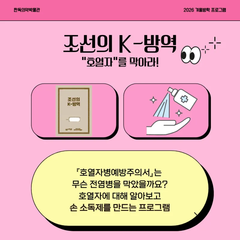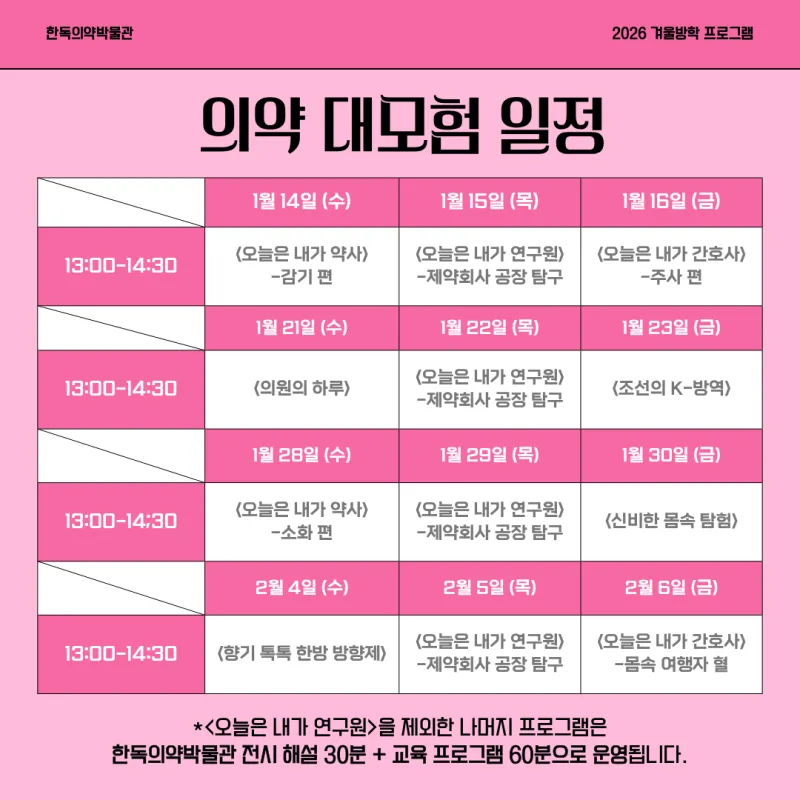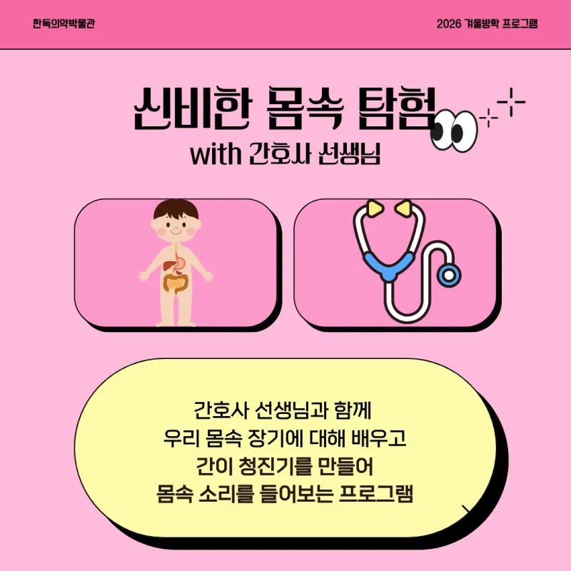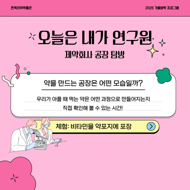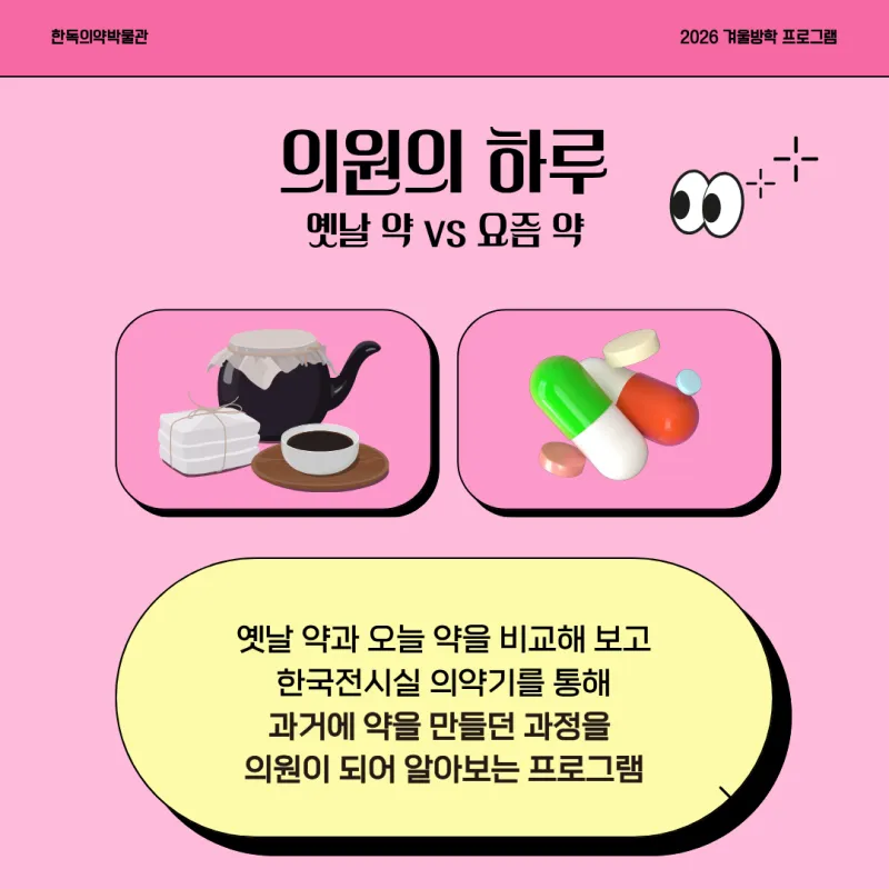 2026 겨울방학 프로그램, 의약 대모험에 대해 같이 알아 볼까요~?