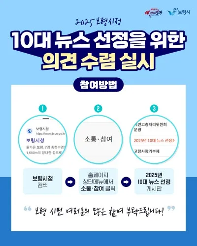 보령시정 10대 뉴스를 선정하기 위한 의견수렴을 실시합니다.