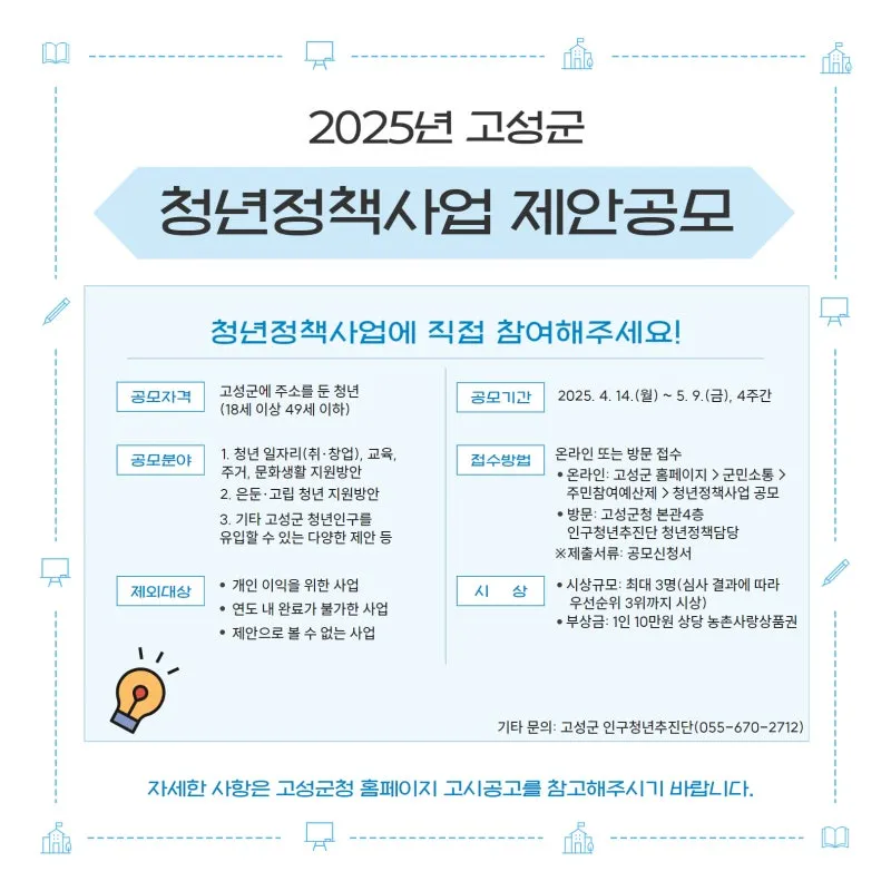 ‘고성군 청년정책사업 제안 공모전’을 개최해요.