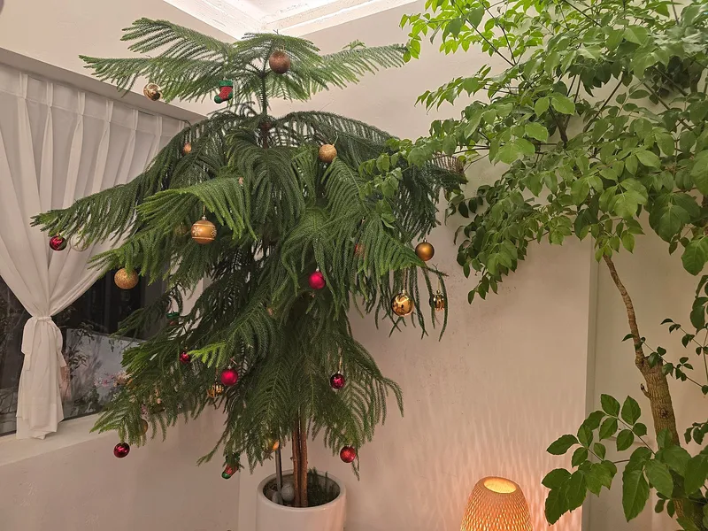 2층에는 조명이 둘러싸인 크리스마스트리 한 그루가 놓여 있었습니다. 조명과 함께 다양한 색상의 방울, 오너먼트로 꾸며져 있었습니다.
