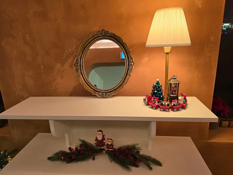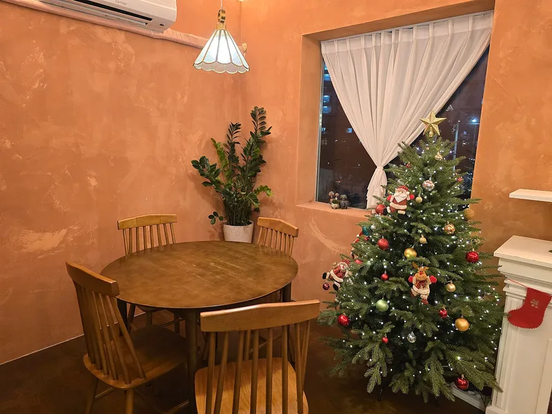 주황색 불빛에 크리스마스트리의 조명이 더해지니 분위기가 더욱 차분하면서 편안함을 느낄 수 있었습니다. 무엇보다 음악으로 크리스마스 캐롤이 흐르고 있어서 편안하고 안락하게 크리스마스 분위기를 느끼기 정말 좋았습니다.
