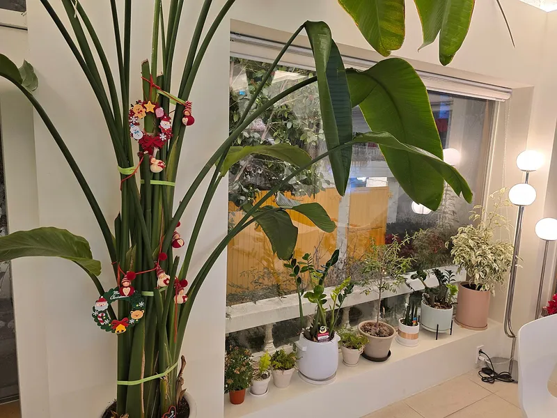 내부는 적당한 밝기의 조명과 네모난 유리창에 여러 식물 그리고 다양한 소품들로 꾸며져 있습니다.