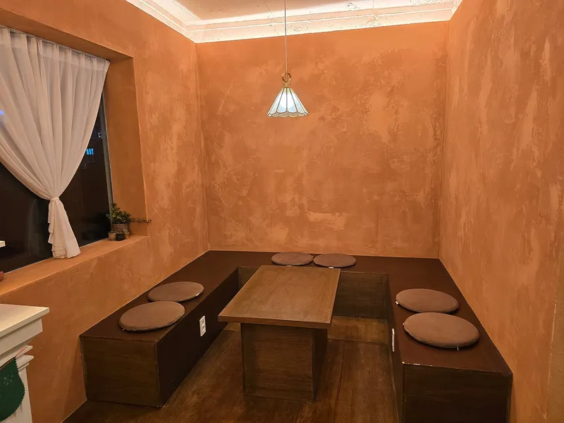 2층 내부는 붉은색 벽에 주황색 불빛이 더해져서 차분하고 안락한 분위기를 갖추고 있습니다. 2층에 있는 테이블과 의자도 목재고 각종 장식, 소품들로 가득해서 고급스러운 분위기까지 더해지고 있습니다.