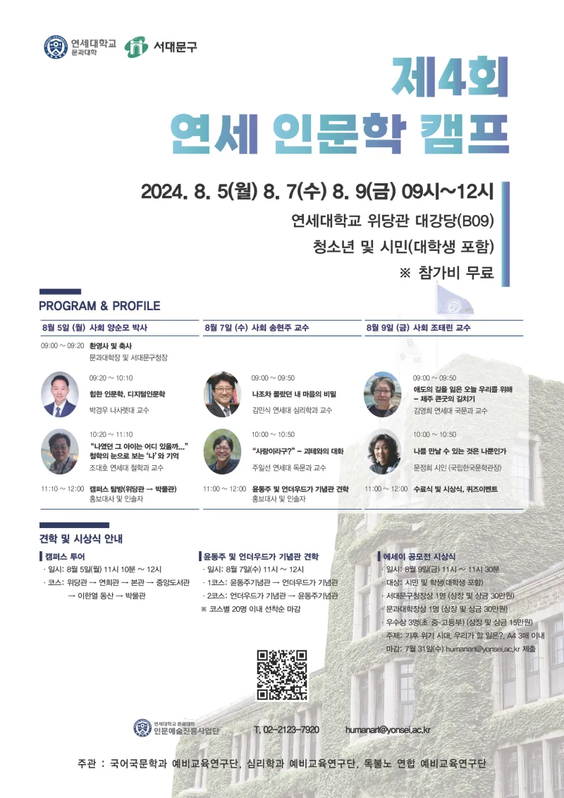 제4회 연세대학교와 함께하는 인문학 캠프 참여자 모집