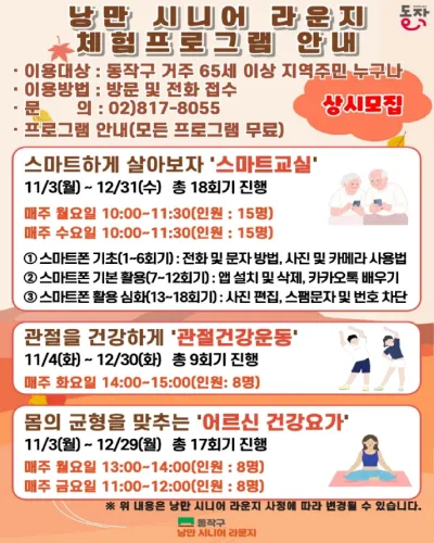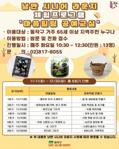 낭만 시니어 라운지 11~12월 체험프로그램 안내