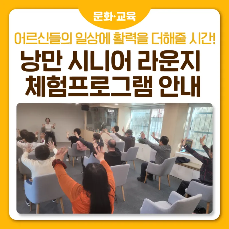 낭만 시니어 라운지는 어르신들의 여가·건강·소통을 위한 열린 공간입니다.