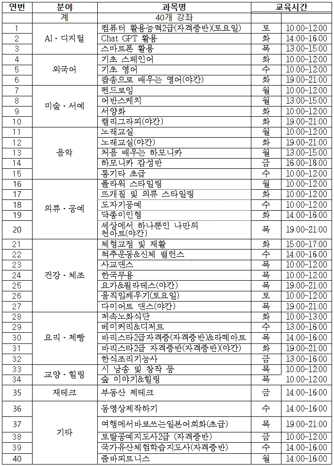 ※재료비, 교재비 등은 본인 부담이며 강사의 안내에 따라 납부