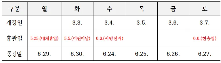 ▶프로그램 운영 일정(개강 및 종강일)
