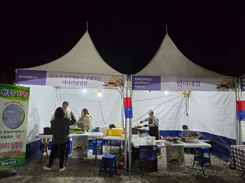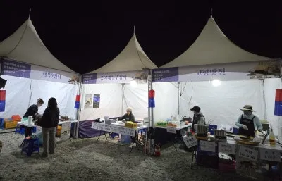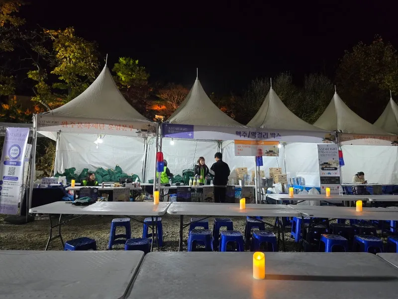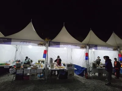 운영 본부와 맥주/막걸리, 만족도조사 부스, 화장실 등이 보입니다. 하지만 저의 가족의 눈을 사로잡은 건 역시 먹거리입니다.