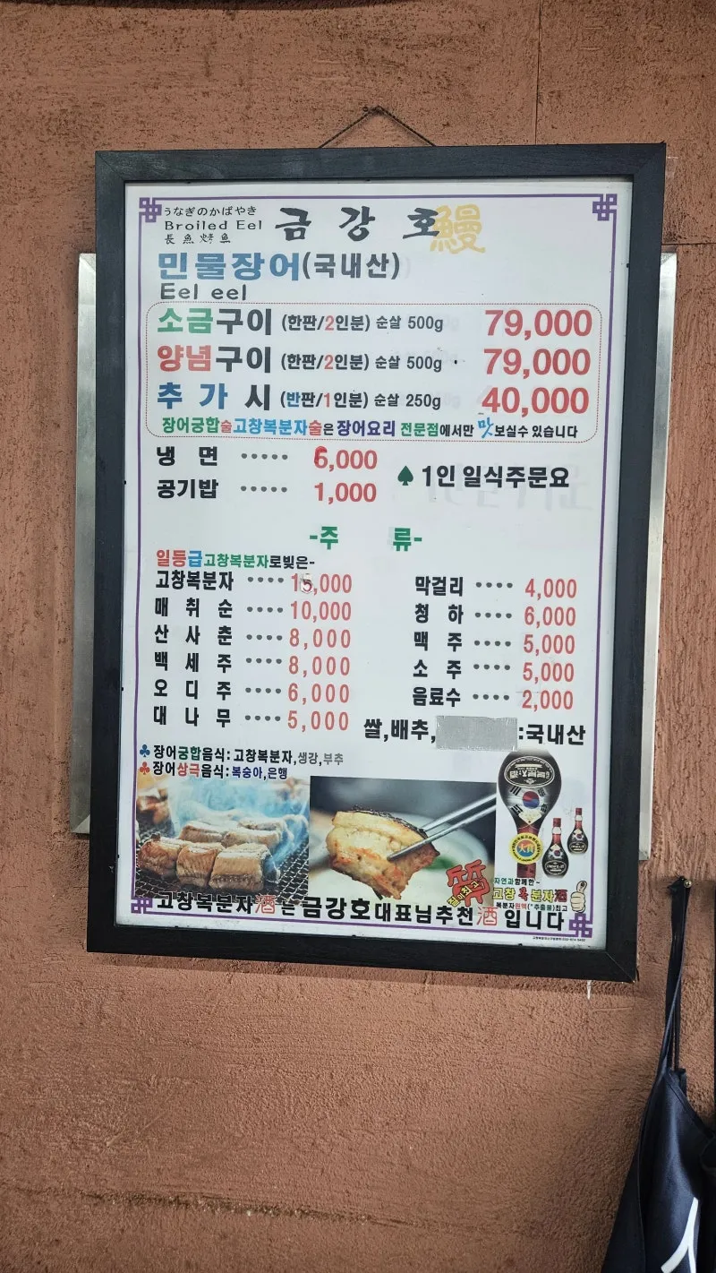 금강호 민물장어 메뉴판도 담아보고요.