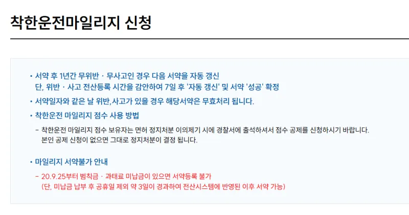 착한운전 마일리지 제도를 가입하시고