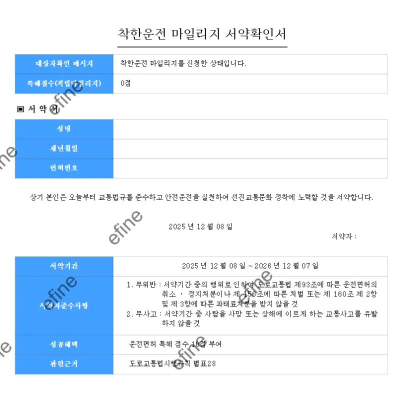 착한운전 마일리지 서약확인서를