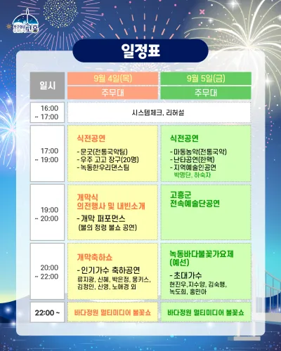 #고흥군 #고흥불꽃축제 #녹동 #녹동항 #소록도 #녹동바다불꽃축제 #국내축제 #전남축제 #전남가볼만한곳 #고흥가볼만한곳 #지금축제하는곳 #9월축제 #불꽃축제 #드론쇼 #고흥드론쇼 #녹동드론쇼 #고흥으로 #가보자고